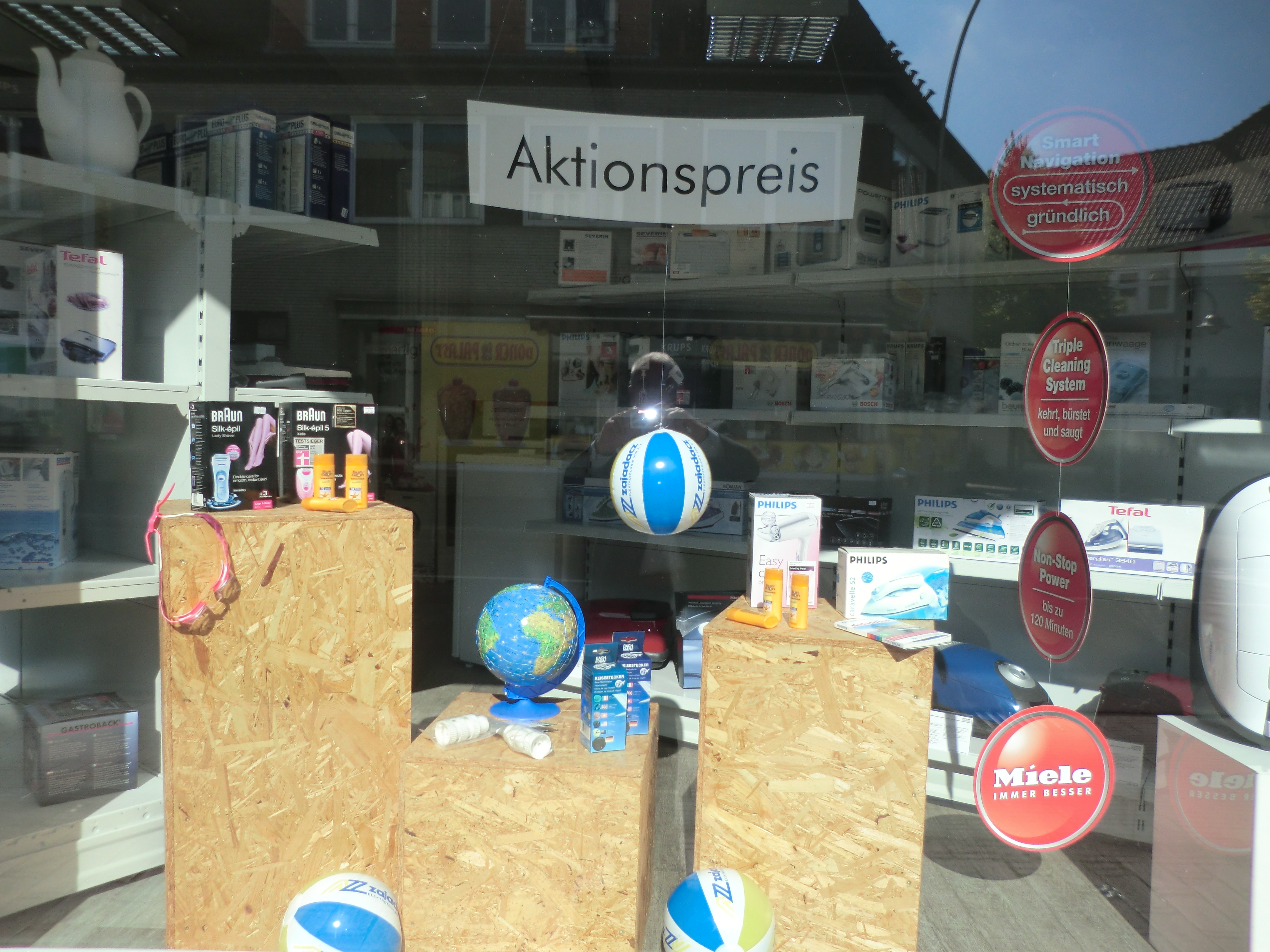 In unserem Fachgeschäft in der Großen Str. 22 präsentieren wir Ihnen auf 200 qm ausgewählte Geräte der Marken Liebherr,Bosch,Technisat, und Miele. Hier werden Sie von uns fachkundig beraten, können Geräte anfassen oder ausprobieren und bekommen neben Original-Zubehör und -Ersatzteilen auch wertvolle Tipps zu Pflege, Bedienung und Energieeffizienz. Über unseren elektronischen Katalog haben wir überdies Zugriff auf mehr als 10.000 Geräte, sodass wir Ihnen Ihr Wunschprodukt innerhalb von 24 Stunden liefern können.